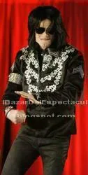 Michael Bush, Michael's long-time costumier, made an elaborate cream jacket decorated with pearls and beads. He was dressed in black trousers with a large gold belt with two cherubs on either side of the buckle. Karen Faye, his make-up artist, applied cosmetics to his face.