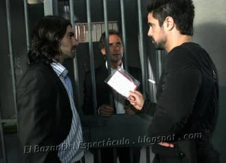 Lucas (Carballo) se lleva detenido a Lorenzo (Taibo) bajo la sospecha de haber matado a Nina (Viggiano).