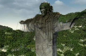 250 años sin humanos: En Rio de Janeiro, El Corcovado ya invadido por las plantas trepadores y sin el mantenimiento adecuado del paso del tiempo ha sufrido tanto desgaste que para que a esta altura no soportará su peso y se caerá.
