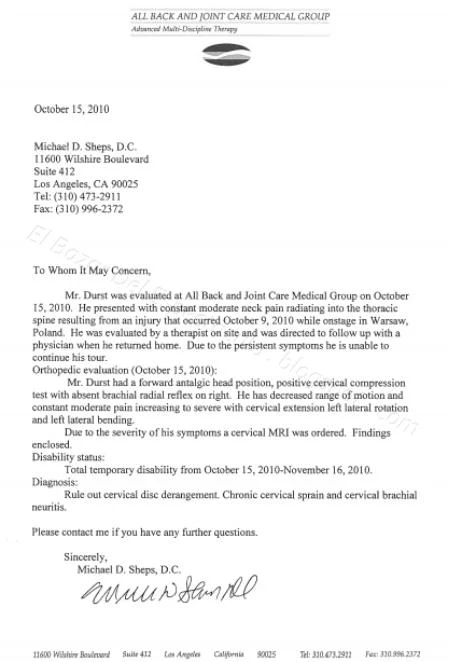 Recital Limp Bizkit cancelado en Argentina hasta el 2011; Devolucion de entradas; Copia del parte medico