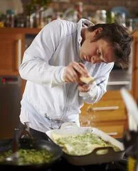 Jamie crea comidas caseras de cero, platos suculentos, ensaladas deliciosas, budines espléndidos y bebidas sumamente refrescantes, con un toque único.