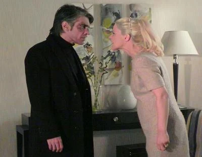 Verónica (Leticia Bredice) y Andrés discuten con reproches mutuos referidos a sus hijos. El intenta tocarle la panza y ella no lo deja. El queda impresionado.