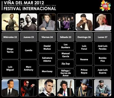 Grandes figuras del mundo de la música ya han confirmado su asistencia, entre ellas: Diego Torres, Juan Luis Guerra y Prince Royce, serán algunos de los artistas que tendrán la difícil misión de mantener tranquilo al ya conocido y temido "monstruo" de la Quinta Vergara .