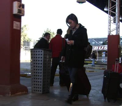 Noelia va a tomar el micro a la estación, mientras Marcos sale como loco con su moto para intentar alcanzarla.
