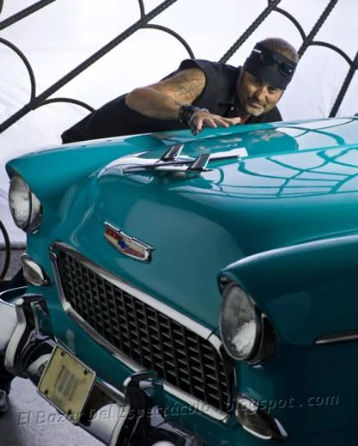 D: De mi mismo te puedo decir que desde niño estuve rodeado de autos y motos, muchos de mis parientes están en la industria automotriz y muchos de ellos están en el mundo de las motos. Esto es algo que llevo en la sangre. A lo largo de los años me la pasé coleccionando autos y motos interesantes, pero también pasé mucho tiempo coleccionando buena gente a medida que mi negocio fue creciendo. He encontrado muchos buenos amigos a lo largo del camino, muchos de ellos son mucho más artistas, tengo a los más increíbles pintores y chicos que pintan con aereosol y otros que hacen trabajo gráfico. Tengo a mecánicos increíbles. Aquí en mi negocio tu auto no tiene que ir a otro lado ya que tenemos distintos departamentos. Con mi gente venimos trabajando desde hace mucho tiempo y todos entienden mi estilo y qué es lo que estoy buscando, qué me gustaría ver en el vehículo. Además somos amigos, salimos bastante juntos fuera de lo que es el trabajo y nos divertimos mucho. Yo tengo una filosofía y es algo de Elvis. El usaba "TCB" ( Taking care of Business = cuidar el negocio). Siempre les digo a mis muchachos, mientras que seamos "TCB" tengamos la mayor diversión que podamos en el camino. Si cuidamos del negocio y va bien, no hay razón alguna por la que no podamos divertirnos. Es un grupo bastante loco, todos estamos un poco locos aquí. Creo que eso es lo que trae afuera la creatividad y hacer del vehículo el mejor que pueda llegar a ser.