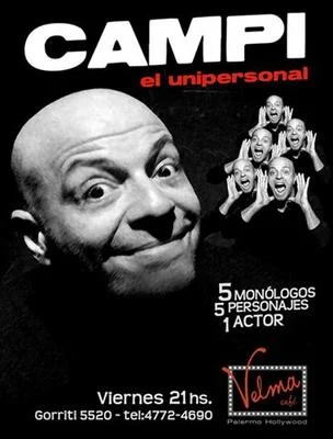 A partir del próximo viernes 5 de Abril, Campi vuelve a la cartelera porteña con su desopilante espectáculo "Campi, El Unipersonal", que se presentará todos los viernes a las 21 hs en Velma Café. Un espectáculo pleno de humor, creatividad y talento, creado y dirigido por el propio Martín Campilongo. Además la obra cuentacon la dirección artística de Antonio Gasalla.