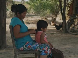 La cabellera de Yolanda lleva impresa la belleza de su cultura Wichí, de su idioma y de los árboles del monte chaqueño, toda esta belleza se encuentra amenazada.