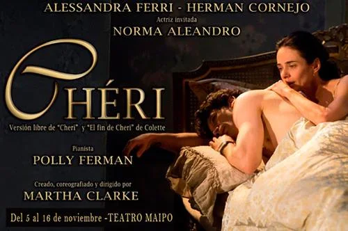El próximo 5 de noviembre y por 11 únicas funciones estrenaremos en el teatro Maipo, el espectáculo de teatro-danza Chéri, una versión libre de las novelas Chéri y El fin de Chéri, que la controvertida escritora francesa Colette publicara en 1920 y 1926 respectivamente. Protagonizan Alessandra Ferri -que regresa a la danza luego de su retiro en 2007, el Primer Bailarín argentino Herman Cornejo, con la participación especial de Norma Aleandro y la actuación de la pianista Polly Ferman., bajo la dirección de Martha Clarke.