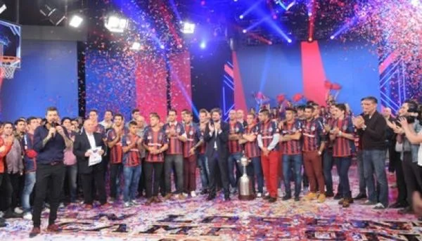 Adolfo Res -precursor de la vuelta a Boedo- dijo que Boedo era su lugar en el mundo. Cargando la Copa Libertadores, los jugadores entraron al piso mientras una lluvia de papelitos azulgrana flotaba por el estudio y la hinchada no dejaba de aplaudir. Marcelo y Matías Lammens se fundieron en un abrazo. Luego se mostró el video motivacional que vieron los jugadores antes de comenzar el partido.