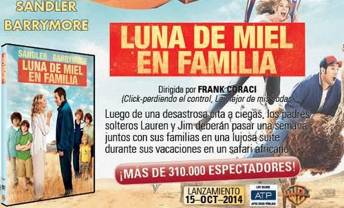 Luna de miel en familia marca la tercera colaboración en una comedia entre las estrellas Adam Sandler y Drew Barrymore, después de Como si fuera la primera vez y La mejor de mis bodas.
