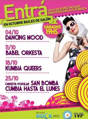 La propuesta para los sábados de octubre continuará con Babel Orkesta (11/10); Kumbia Queers (18/10) y la orkesta popular San Bomba Cumbia Hasta el Lunes (25/10).
