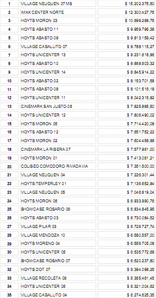 Es la primera vez en la historia que una sala del interior del país encabeza el ranking de facturación, con una recaudación superior en 23.5% respecto a la segunda sala; además, recién en el puesto 18 figura otra sala del interior (en este caso, de Santa Fe), entre todas salas de la Ciudad Autónoma de Buenos Aires y Gran Buenos Aires.