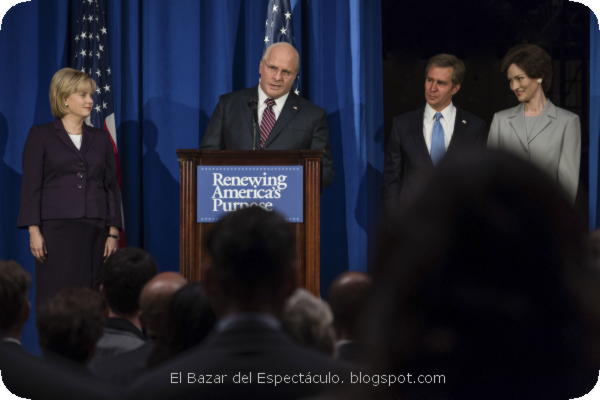 Adueñándose por completo de la personalidad del altamente reservado personaje principal, que cambió el mundo de formas en las que pocos líderes de los últimos 50 años han logrado, el ganador del Oscar® Christian Bale encabeza un reparto estelar que incluye al nominado al Oscar® Steve Carell, como el afable pero duro Donald Rumsfeld; a la nominada al Oscar® Amy Adams, como la ambiciosa esposa de Cheney; y al ganador del Oscar® Sam Rockwell, como el influenciable George W. Bush.
